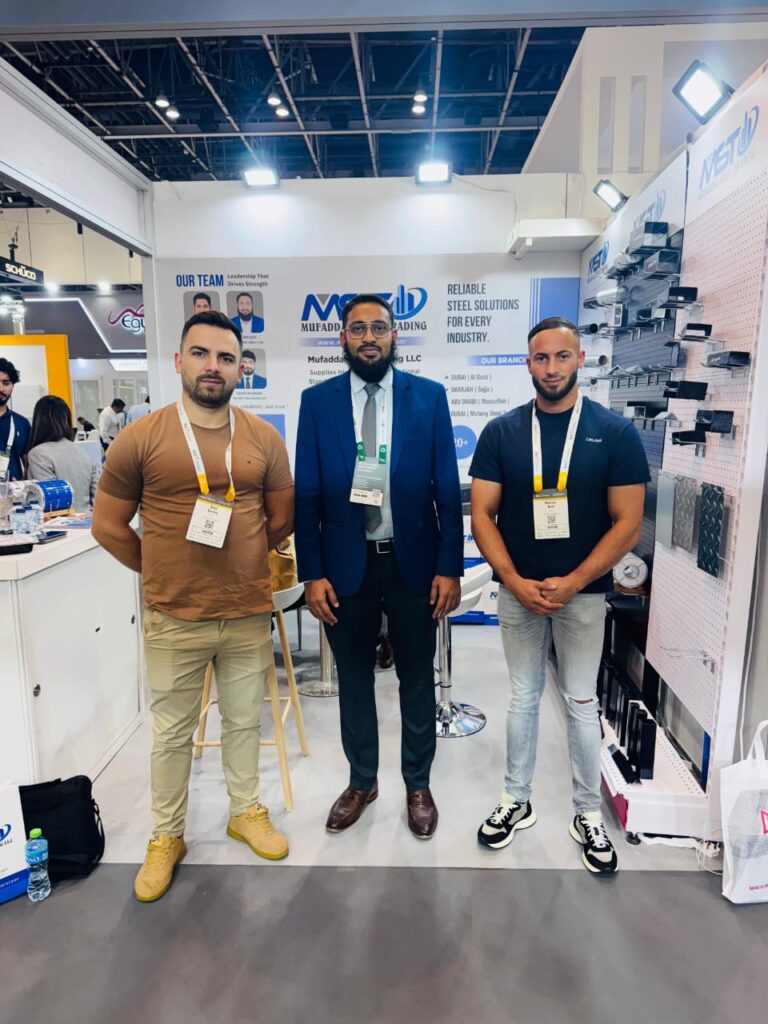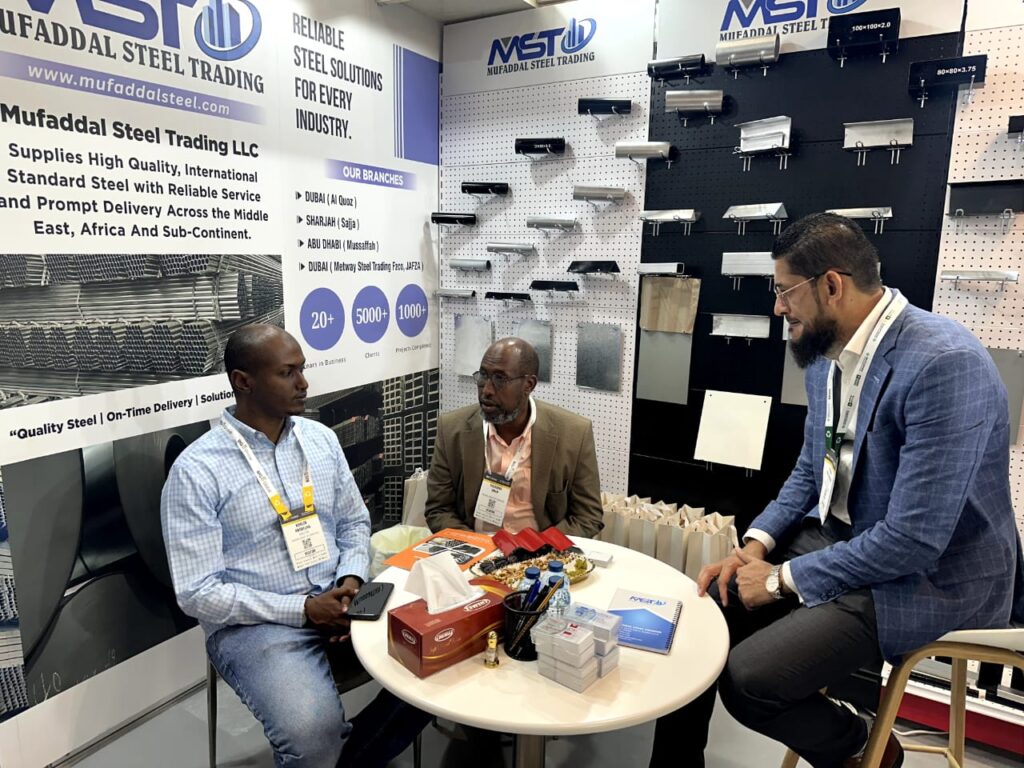At Stand AR-E219, located in the Sheikh Saeed Hall – Trade Center Arena, Mufaddal Steel Trading LLC welcomed industry professionals, contractors, developers, and suppliers from across the GCC, Africa, and international markets. Our booth became a hub for meaningful discussions, new business opportunities, and knowledge exchange.